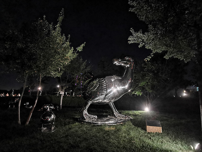 《渡渡鳥》用樹影燈映亮雕塑周圍環境,以小型投光燈重點強調雕塑局部,仿佛渡渡鳥又回到了這個世界。