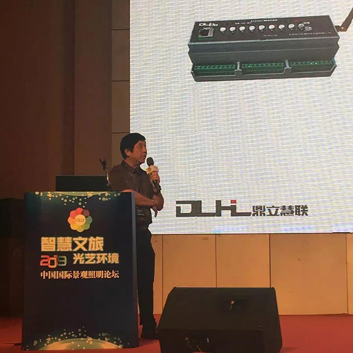 會議邀請業內專家、學者、科研人員、設計師就景觀照明產品標準、研發、工程設計、新技術應用、未來發展做主題報告,相互討論,互動交流。信達電通研發中心總工程師林軍先生出席論壇,從深層次的技術出發,分析景觀亮化控制系統的沿革與技術限制,并介紹信達電通自主研發的“鼎立慧聯”智慧照明云服務平臺,為智慧城市照明子項搭建提供技術新思路。