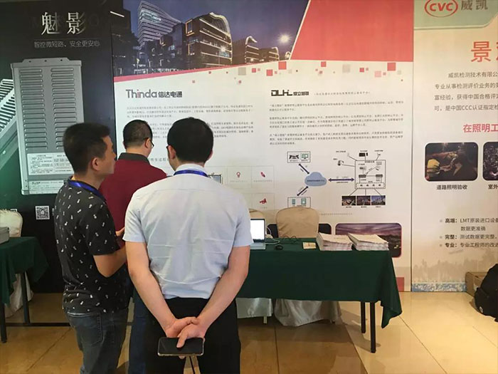 /信達電通研發中心工程師李衛(左)介紹“鼎立慧聯”智慧照明云平臺/