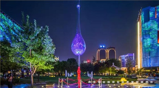 信達(dá)電通在2017年完成了眾多大型城市亮化項(xiàng)目,其中濃墨重彩的一筆當(dāng)屬西安創(chuàng)業(yè)咖啡街區(qū)的亮化。
