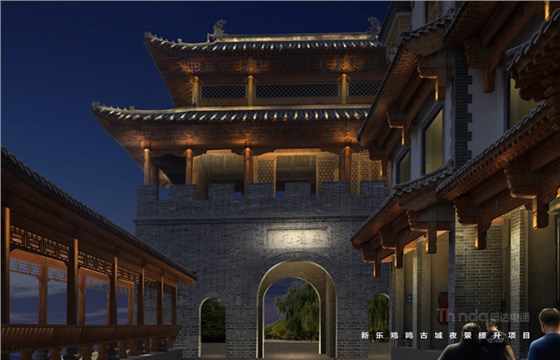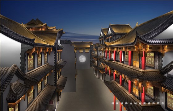 亮化設(shè)計(jì)從宏觀和微觀兩種尺度入手:在宏觀上強(qiáng)調(diào)整體性,建立清晰的夜景結(jié)構(gòu)并區(qū)分主次,體現(xiàn)青磚黛瓦,淡雅風(fēng)華,那種褪盡喧囂之后的寧靜和內(nèi)斂。在微觀上,以人為本實(shí)現(xiàn)照明的舒適性,營造溫馨雅致的光環(huán)境。本案中雞鳴古城亮化設(shè)計(jì)將主入口處城樓及親水樓臺為高亮度區(qū)域,沿街立面烘托商旅氛圍為中亮度,建筑頂部營造靈境、淡雅的光環(huán)境,弱化表現(xiàn)為低亮度區(qū)域。主體光色以暖光呈現(xiàn),靜態(tài)光為主。燈光主要體現(xiàn)其渾厚、大氣的建筑結(jié)構(gòu),打造整體感與形態(tài)美,滿足建筑自身功能和精神需求的同時(shí),突出顯著入口標(biāo)志。以間隔小投光形式呈現(xiàn),突出入口醒目標(biāo)志和節(jié)點(diǎn)設(shè)計(jì)。拒絕大面積重彩潑墨,以投光進(jìn)行小范圍營造,點(diǎn)綴成景,留白處理,避免喧鬧、浮華,營造靜謐、文雅的氛圍。燈光錯(cuò)落有致,層次分明,有熱鬧活力的商旅氛圍,也有溫馨雅致的古典情懷,使人漫步其中,移步異景,感受她的舒適與雅致。