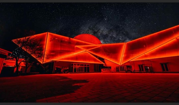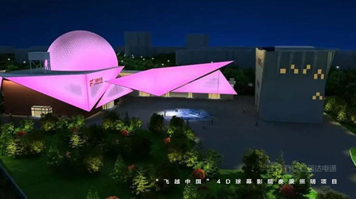 在光色的設(shè)計中,信達(dá)電通采用皓白、暖黃、科技藍(lán)等多種顏色漸變切換的設(shè)計手法。燈光重點勾繪外圍建筑輪廓,突出建筑的獨特結(jié)構(gòu),與球幕影院和廣場地面的投影形成互補和諧的夜景畫面。