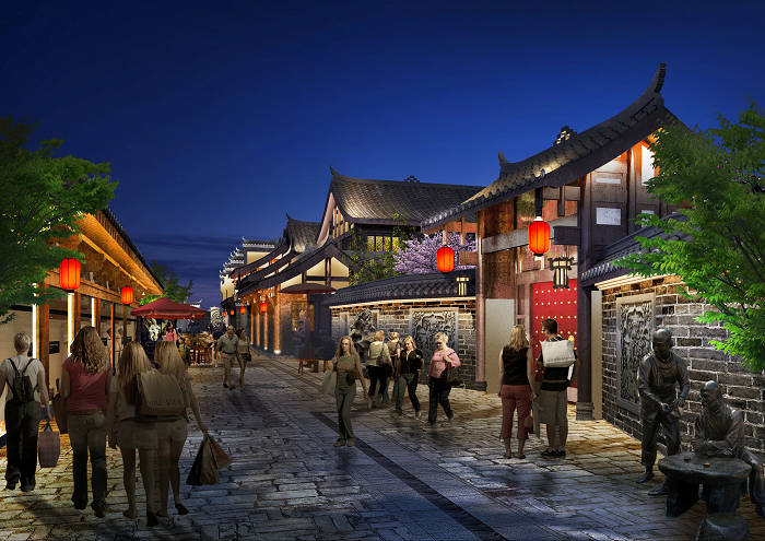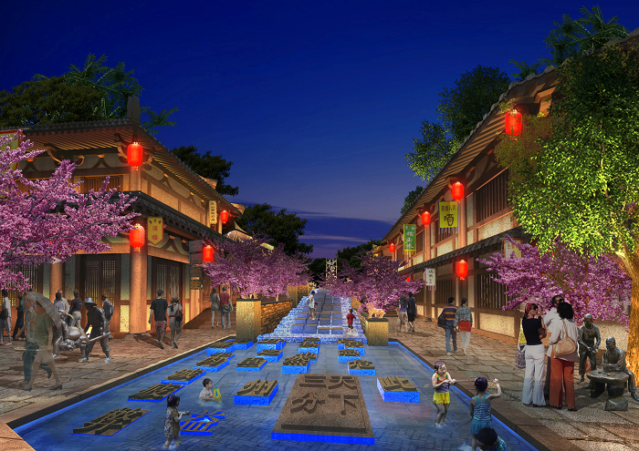 信達電通根據(jù)忠義街布局、載體特點,對整體夜景進行規(guī)劃,并對建筑、廣場、雕塑、水體、景觀、道路等載體進行具體設(shè)計,打造一場互動體驗式的三國主題度假休閑之旅。