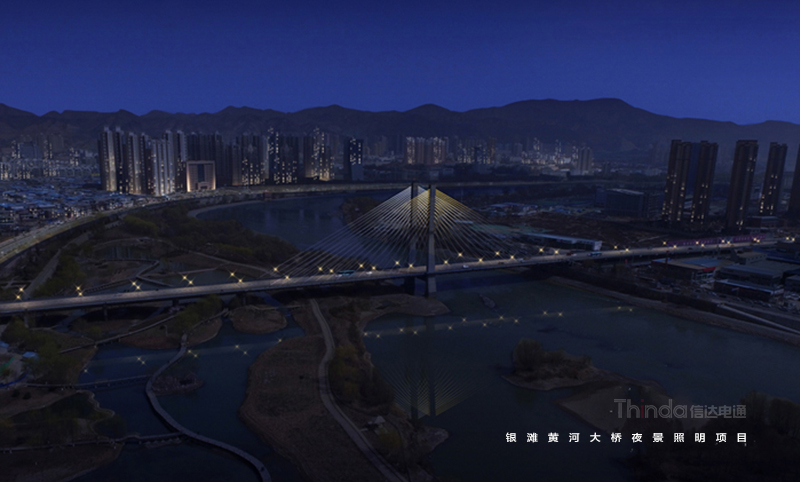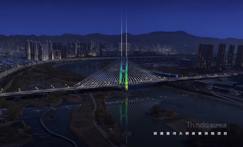 銀灘黃河大橋是蘭州市城市交通樞紐工程,北通蘭州中川國(guó)際機(jī)場(chǎng),南達(dá)蘭州北站。信達(dá)在夜景亮化設(shè)計(jì)中以功能性、裝飾性照明為主,同時(shí)也避免高亮度、多光色對(duì)行車造成安全隱患。橋身和纜繩的彩光使得大橋成為夜間最獨(dú)特的風(fēng)景。