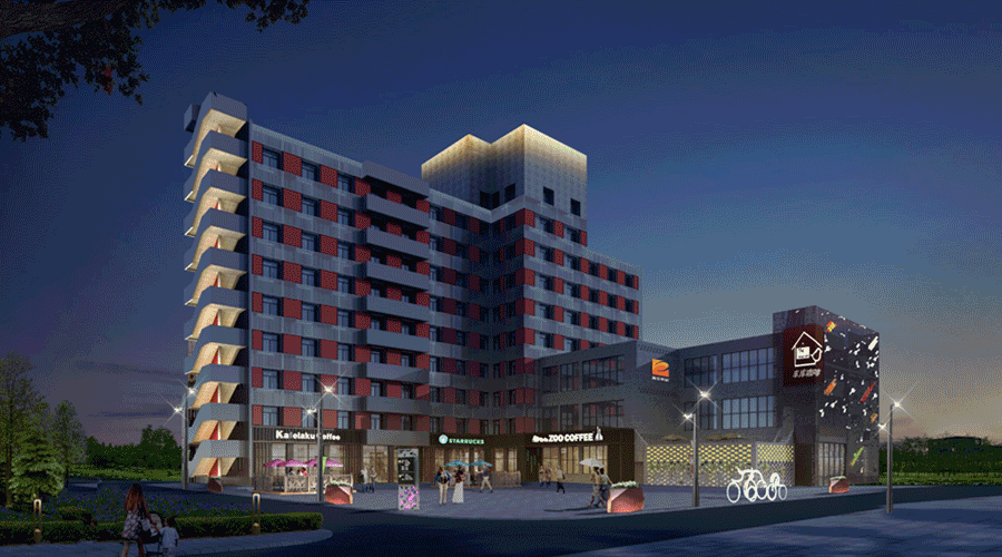 咖啡街區為創業者提供一個工作、生活、社交為一體的全新平臺,是一個充滿年輕、現代、時尚、活力的國際化生態圈。因此建筑風格要貼合街區主體,造型時尚大方又不失個性。建筑實施與燈光實施同步進行,燈具管線隱藏并與建筑結構完美結合,能夠做到見光不見燈,并且統一布線便于智能統一管理。通過使用新型材料、采軸玻璃、鋁板沖孔和曲面造型使建筑樓面表現豐富和環保。