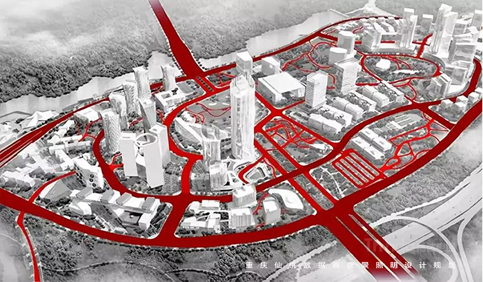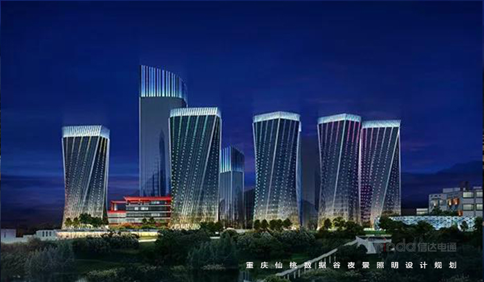 信達電通以梳理景觀層次,打造宜觀、宜居的夜環境;綜合國家照明標準與仙桃國際數據谷自身特性,合理規劃功能照明;在防控光污染、照明控制技術、照明手法三個層面體現“仙桃國際數據谷”,打造智慧城市、低碳交通、健康宜居環境、科技智慧支撐平臺;營造優美的重慶夜景觀城市地標為照明目標。